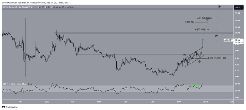 AXS 가격은 장기 하강 저항 추세선을 돌파한 10월 이후 상승했습니다. 이 추세선을 돌파하기 전에는 700일 이상, 특히 2021년 11월의 사상 최고가 이후 700일 이상 추세선이 유지되고 있었습니다.