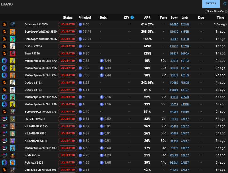 NFT 분석기업 스노우 제네시스는 대출 담보로 잡힌 NFT 수백 개가 청산될 위험에 처해 있다고 밝혔다. 이들 중 일부는 상환됐지만 이미 몇몇 NFT는 경매에 올랐다.