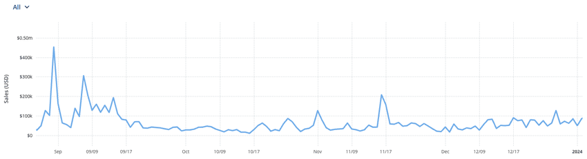 대퍼 랩스는 몬태나와 전 댈러스 카우보이스의 쿼터백 존 엘웨이에게 이 컬렉션을 홍보하도록 의뢰했습니다. NBA 탑샷 하이라이트 릴 NFT에는 미치지 못했지만, NFL 올데이 컬렉션은 9월 NFL 시즌이 시작될 때 출시된 이후 누적 판매액이 천만 달러에 달했습니다.