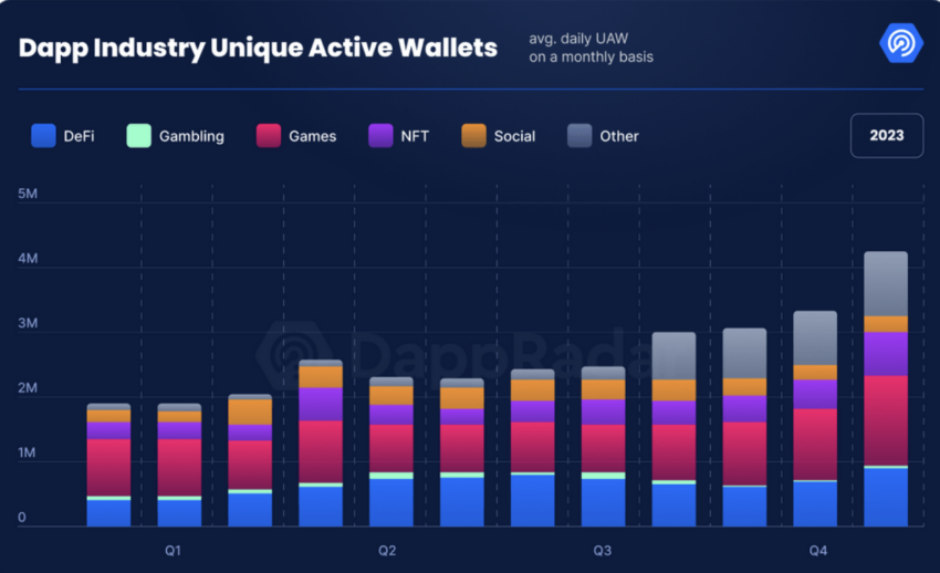 최근 보고서에 따르면, 탈중앙화 애플리케이션(Dapp) 산업은 2023년에 상당한 성장을 보였습니다.