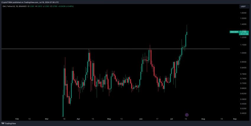 OM의 가격 움직임은 암호화폐 업계의 저명한 분석가들의 관심을 끌었습니다. 익명의 애널리스트인 크립토 토니는 OM의 가격 움직임에 대한 자신의 통찰을 공유했습니다.