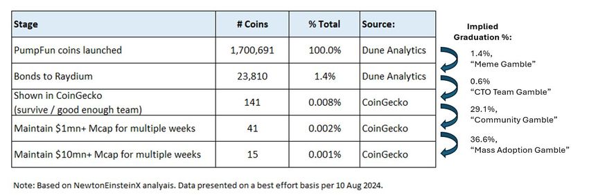 펌프닷펀 밈 코인 성공률. 출처: 뉴턴아인슈타인X