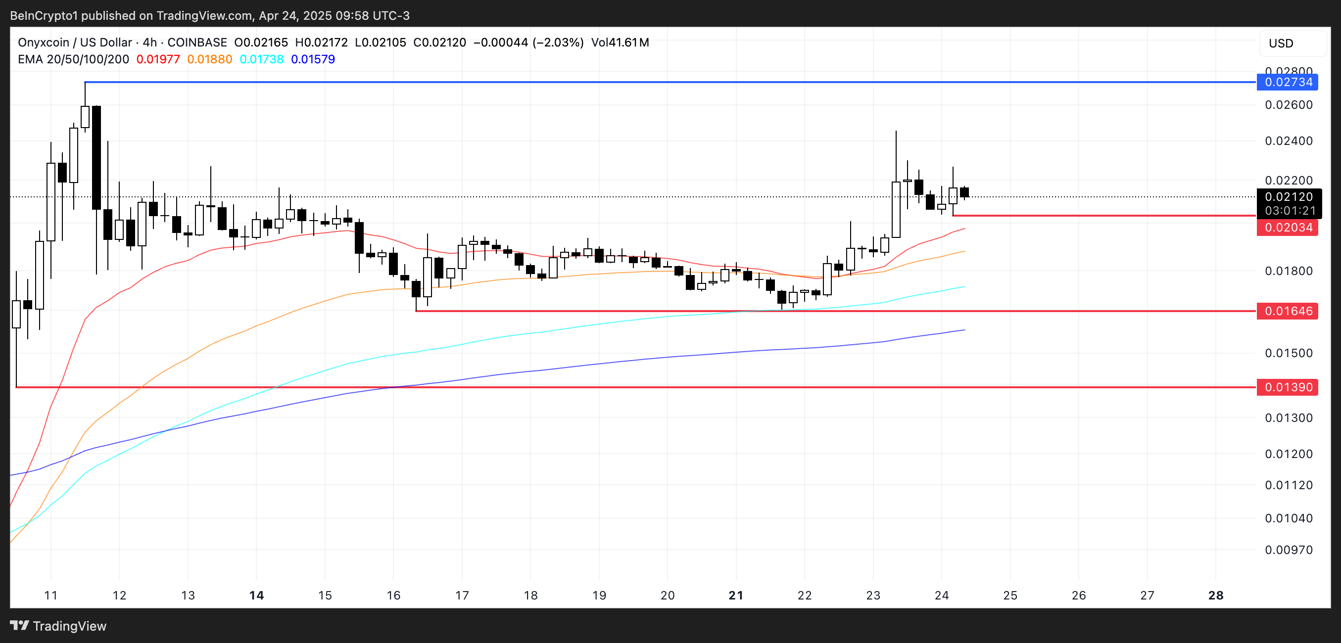 오닉스코인 가격은 0.020달러의 주요 지지 수준 바로 위에 머물고 있으며, 이는 다음 주요 움직임을 결정할 수 있는 중요한 구역입니다.