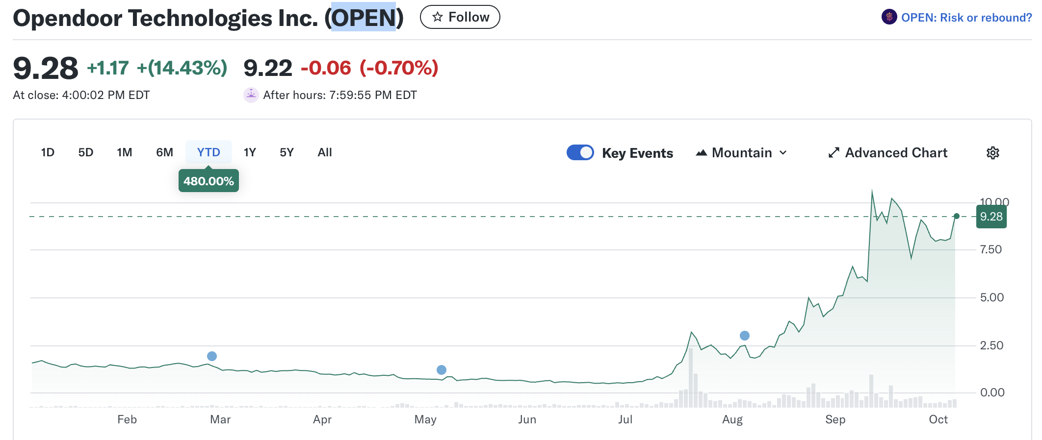 오픈도어 테크놀로지스(OPEN)의 주가는 10월 6일 14.4% 상승하여 9.28달러가 되었습니다. CEO 카즈 네자티안이 주택 구매에 비트코인 결제를 도입할 계획을 확인한 후입니다. 이 발표는 암호화폐 투자자들 사이에서 낙관론을 불러일으켰으며, 부동산에서 디지털 화폐의 주류 채택을 향한 중요한 단계로 평가받고 있습니다.