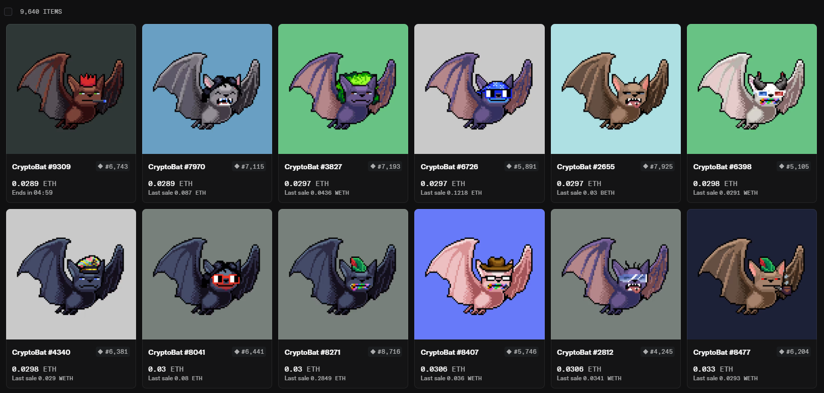 크립토배츠는 수집 가능한 이미지일 뿐만 아니라, 각 박쥐가 다른 NFT를 “물어” “뮤턴트배츠(MutantBatz)”라는 하이브리드를 형성할 수 있는 독특한 기능을 제공했습니다.