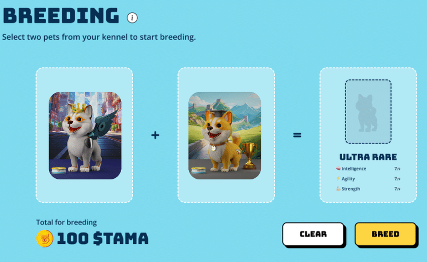 타마도지 펫 스토어는 TAMA 생태계의 자체 마켓플레이스로, 이 곳에서 사용자는 신규 기능인 브리딩을 체험할 수 있다.