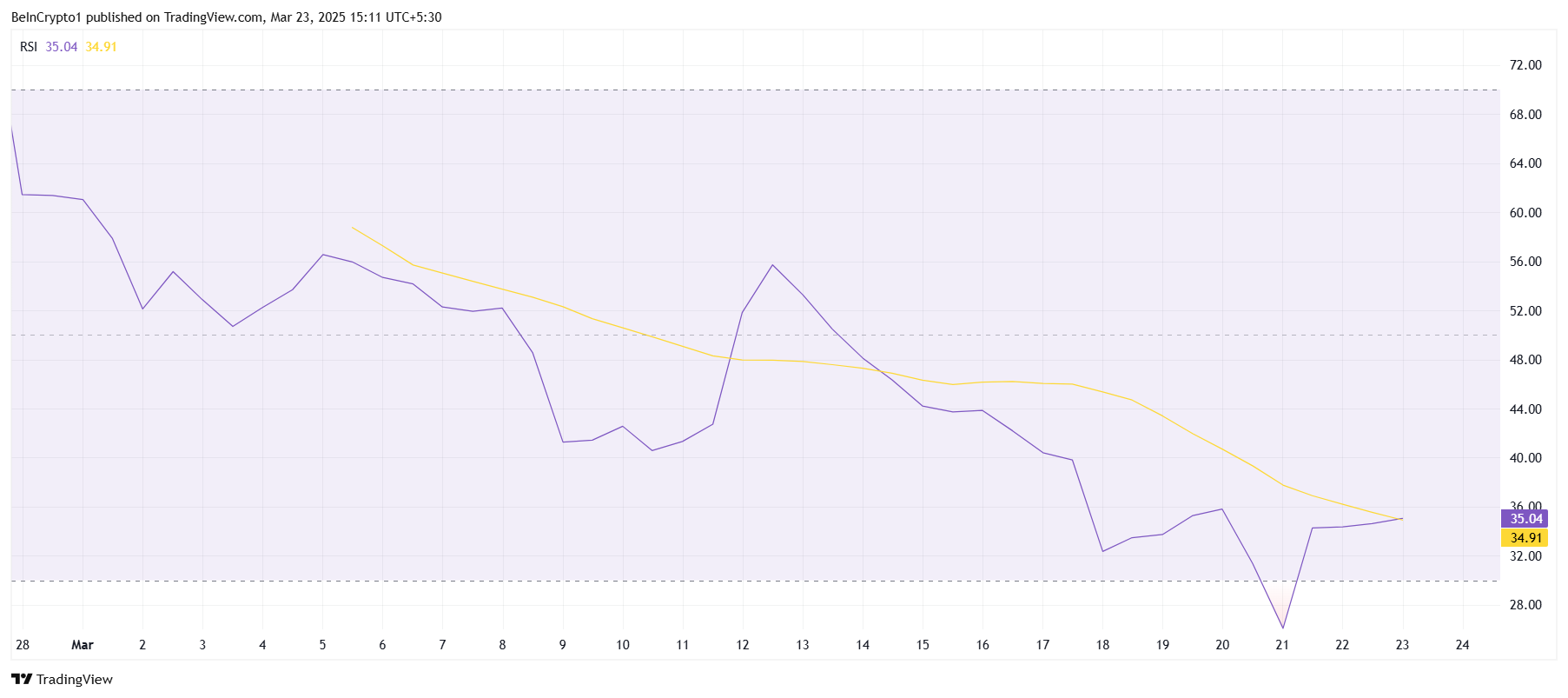파이 네트워크의 거시적 모멘텀도 변화의 조짐을 보이고 있습니다. 상대 강도 지수(RSI)는 이번 주 초 과매도 구역에 도달한 후 반등했습니다. 이는 일반적으로 잠재적 반전을 나타내며, 하락 모멘텀이 완화될 수 있음을 시사합니다.