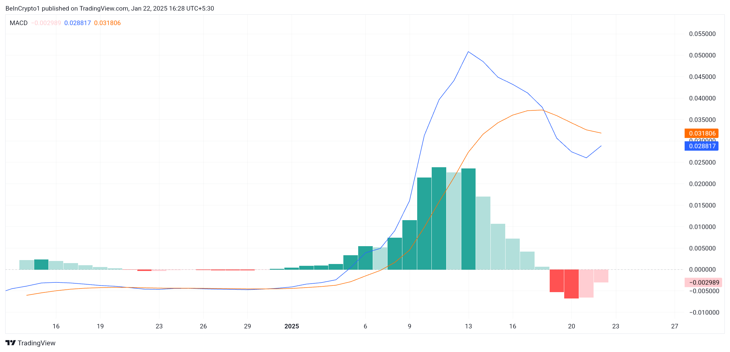 이동평균 수렴 확산(MACD) 지표는 PIPPIN의 모멘텀 변화 가능성을 시사합니다. 현재 강세 교차에 가까워지고 있는 이 지표는 최근 약세 국면의 종료 가능성을 나타냅니다. 확인되면 이 교차는 PIPPIN의 상승세 지속을 알리고 투자자 신뢰를 더욱 높일 것입니다.