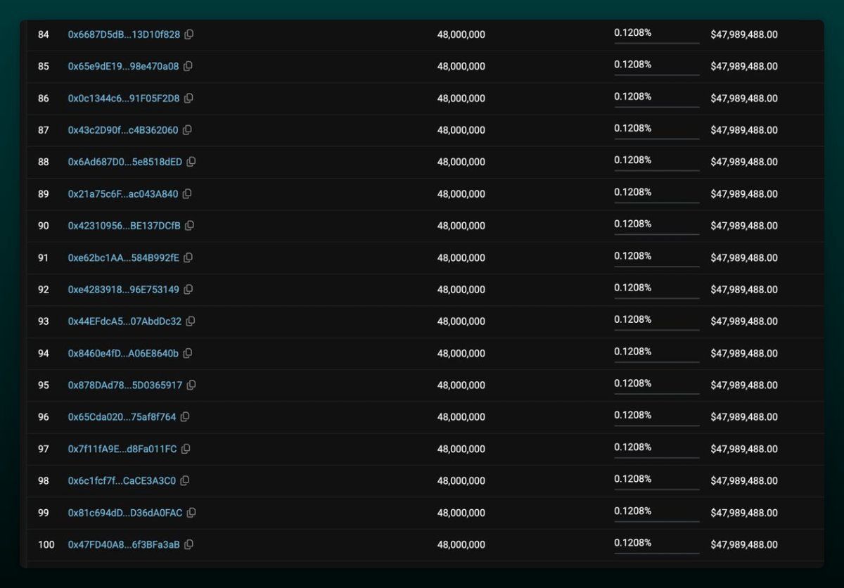 데이터에 따르면 소수의 지갑만이 과도한 할당을 차지했습니다. 특히 상위 세 명의 기여자가 1억 달러 이상을 공동으로 배치했습니다.