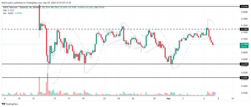 MATIC의 가격은 0.70 달러에 거래되어 지난 3 주 동안 네 번째로 0.74 달러의 저항선을 돌파하지 못했습니다. 위에서 언급했듯이 상당한 저항에 직면하고 있기 때문에 알트코인은 또 다른 하락을 기록할 가능성이 높습니다.