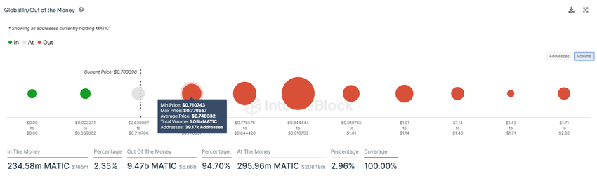통합의 상한선이 0.74달러라는 점을 감안할 때, 이 공급이 수익을 내기 위해서는 MATIC이 더 상승해야 합니다.