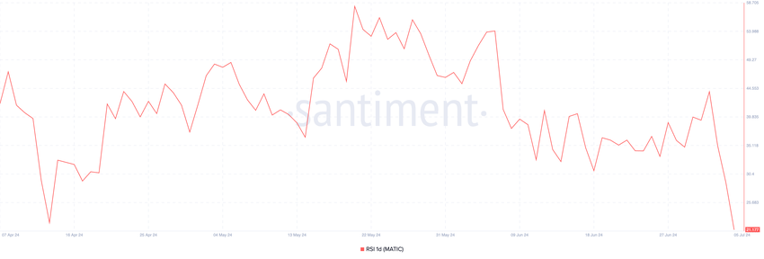 또한 MATIC의 상대 강도 지수(RSI)는 21.17로, 위의 포지션에 신뢰를 더합니다. 이 지표는 자산의 과매수 및 과매도 시장 상황을 측정합니다. 0에서 100 사이의 범위로, 70 이상이면 과매수 상태이며 조정이 필요하다는 신호이고, 30 미만이면 과매도 상태이며 반등할 수 있음을 나타냅니다.