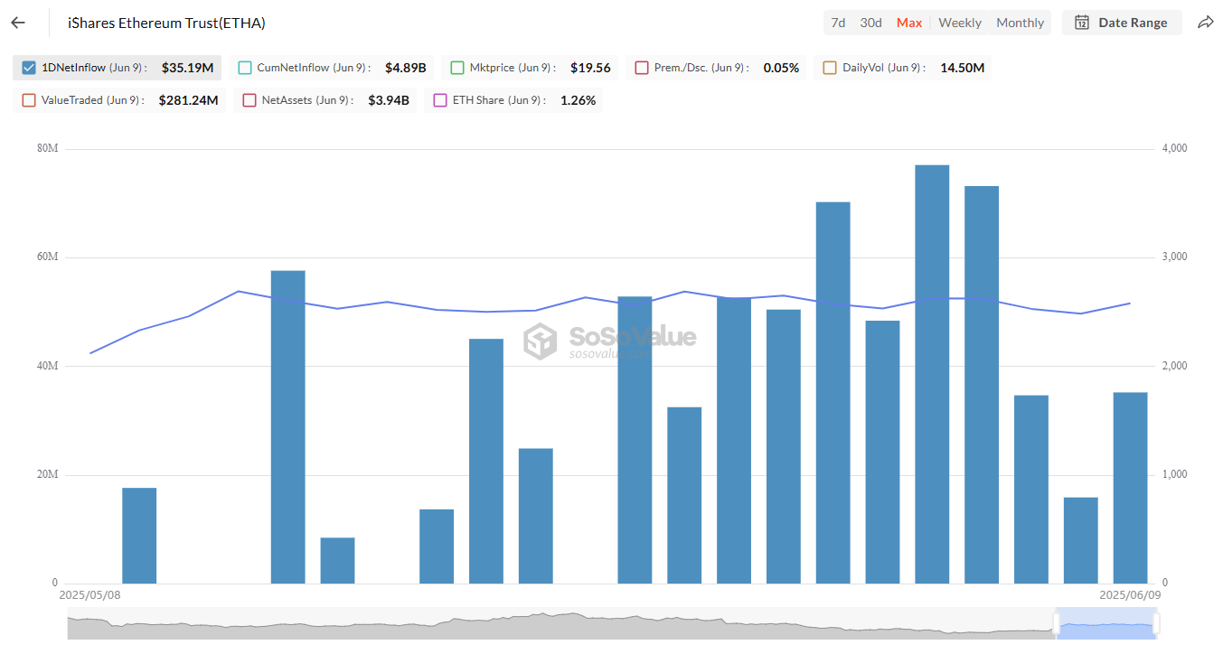 악셀 비트블레이즈가 ETH에 대해 낙관적인 주요 이유 중 하나는 블랙록의 공격적인 매집입니다. 2025년 5월 9일부터 블랙록은 26만9000 ETH를 매입했으며, 이는 약 6억7340만달러에 달합니다. 이는 ETH에 대한 장기 투자 전략을 나타냅니다.