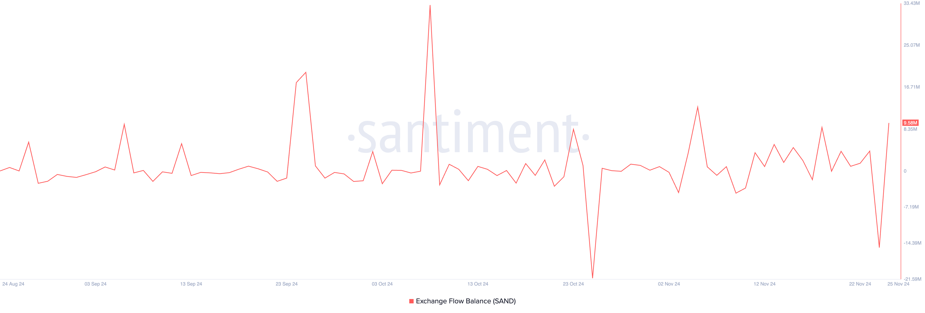 이는 거래소에 예치되는 SAND 토큰의 양이 증가했음을 반영합니다. 이는 보유자들이 매도를 준비하고 있음을 나타내며, 가격 하락 압력을 초래할 수 있습니다.