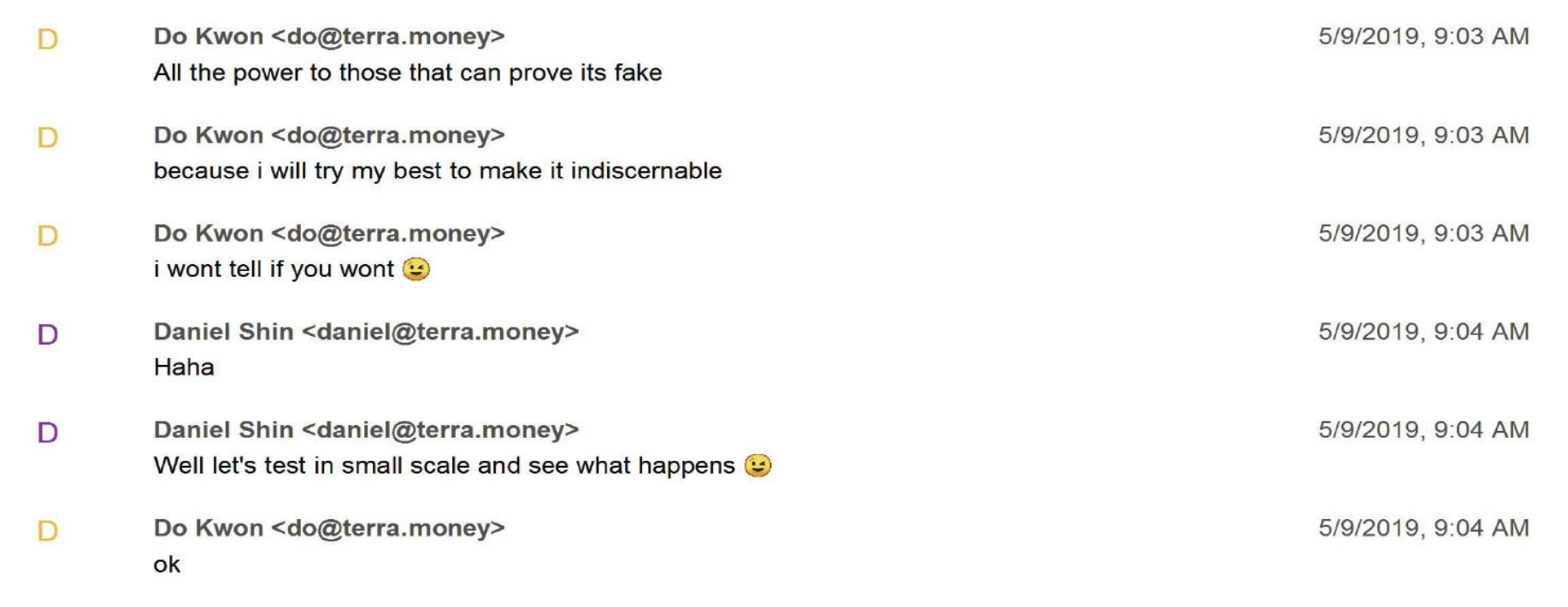 Sponsored이에 권도형은 “누구도 이것이 가짜 거래라는 걸 발견하기 어렵게 만들겠다(I will make it difficult for anyone to discover the fraud)”라고 답했다.