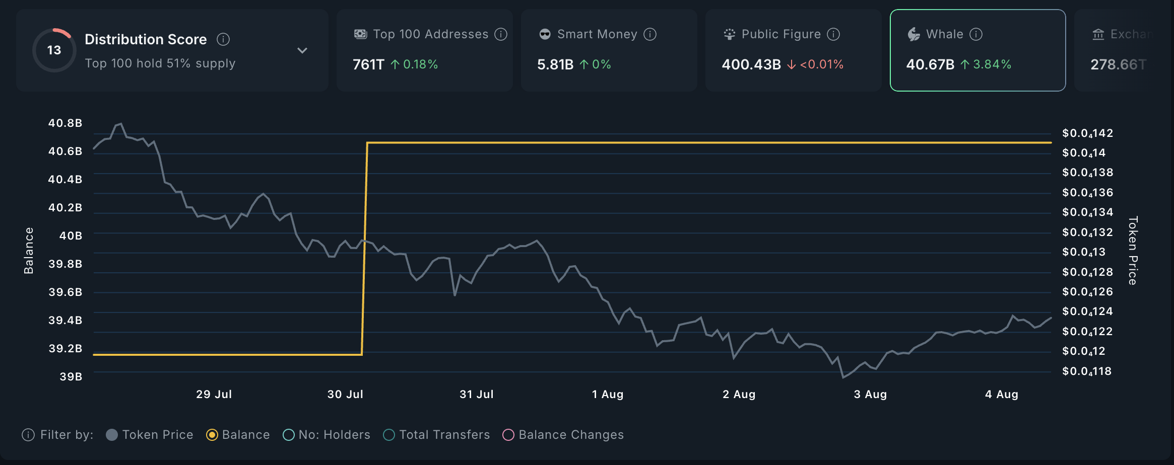 고래 매집의 증가는 SHIB의 장기 가치에 대한 신뢰가 증가하고 있음을 시사합니다. 이는 가격이 시장 변동성 속에서 고전하고 있는 상황에서도 마찬가지입니다.
