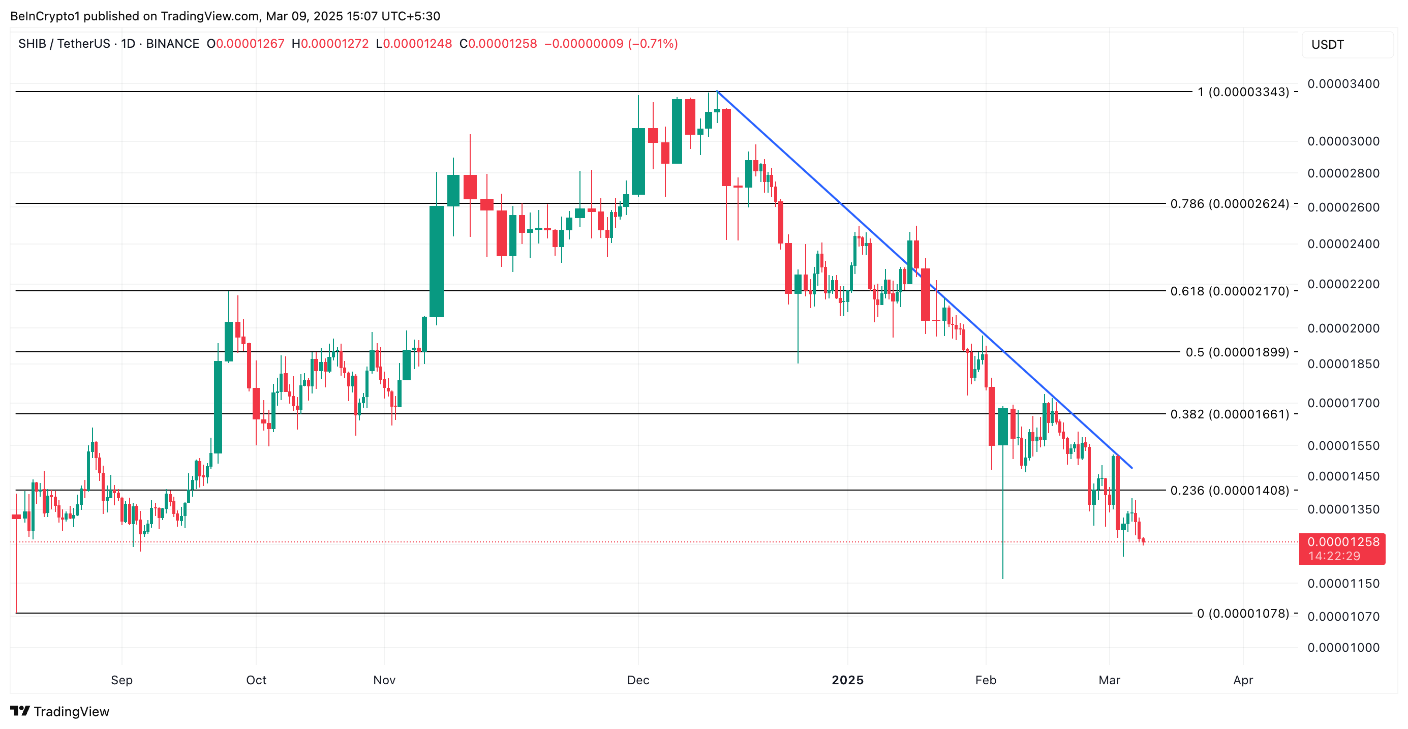 시바이누, 하락 추세선 아래 유지