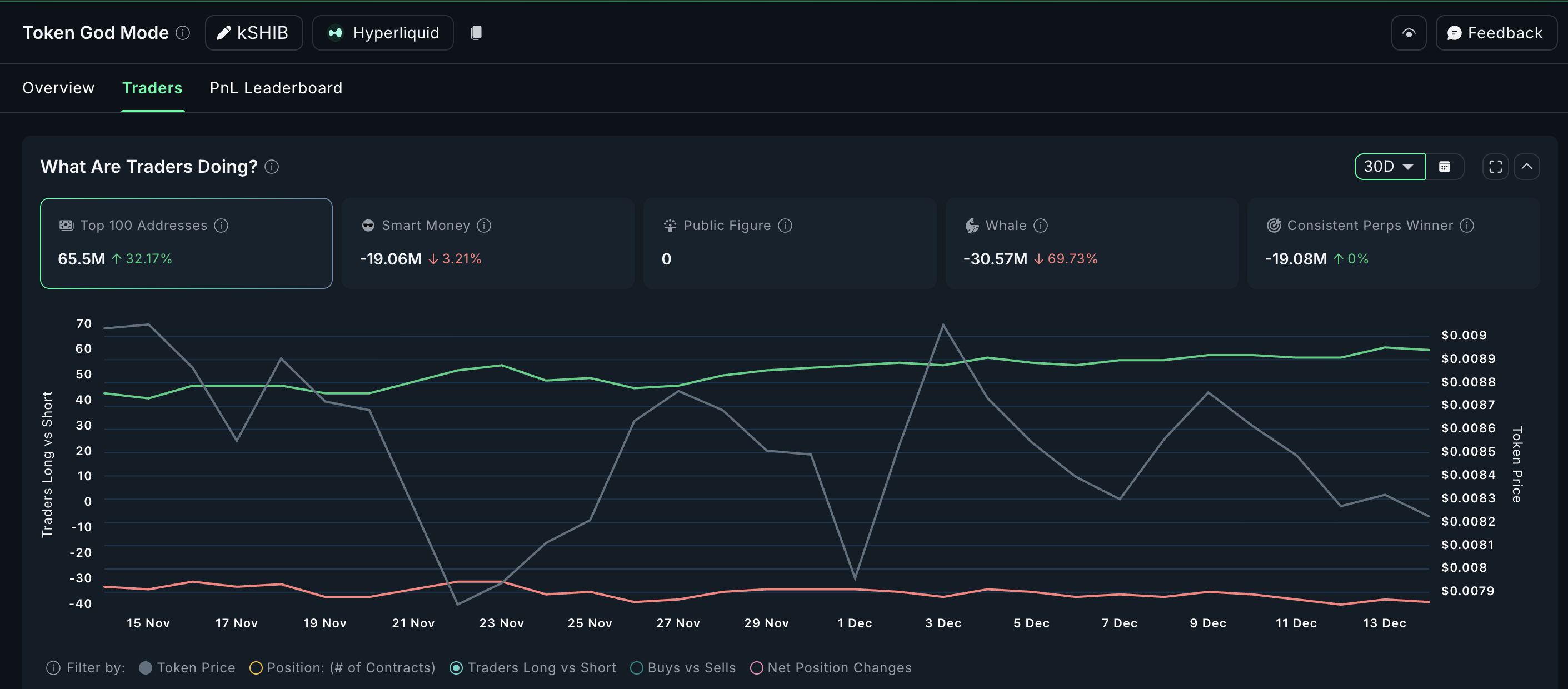 하지만 파생상품 트레이더가 동참하고 있지 않다는 점도 중요합니다. 상위 주소를 제외하면 레버리지 포지션이 활발하지 않습니다. 고래들은 빠르게 진입했으나, 공격적으로 매수하지는 않았습니다.