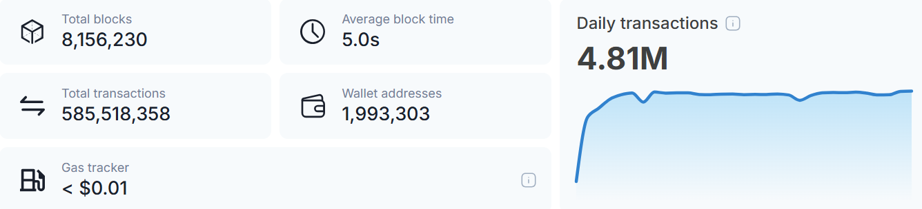작년 출시 이후, 시바리움은 상당한 주목을 받았습니다. 이 플랫폼은 거의 6억 건의 거래를 처리했으며, 이달 초 5억 번째 거래를 달성했습니다. 또한 약 200만 개의 블록체인 주소가 시바리움과 상호작용했으며, 네트워크는 800만 개 이상의 블록을 성공적으로 처리했습니다.