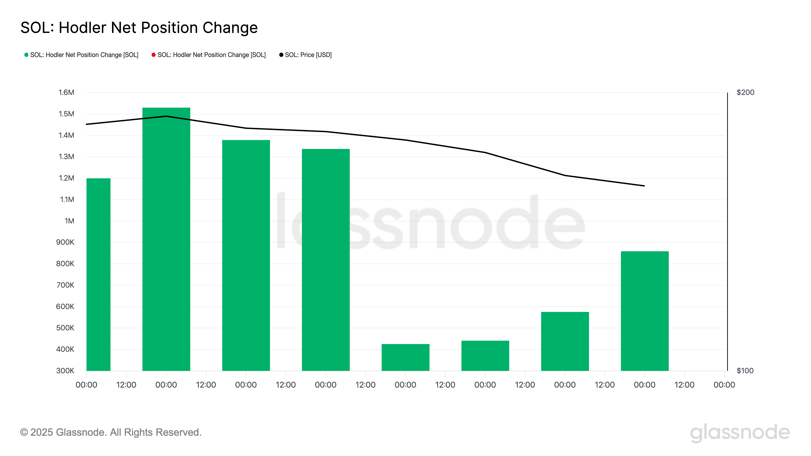 게다가, 7월 30일 이후 SOL의 홀더 순 포지션 변화는 꾸준한 증가세를 기록했습니다. 이는 자산의 부진한 가격 움직임에도 불구하고 더 많은 코인이 장기 저장으로 이동하고 있음을 확인합니다.