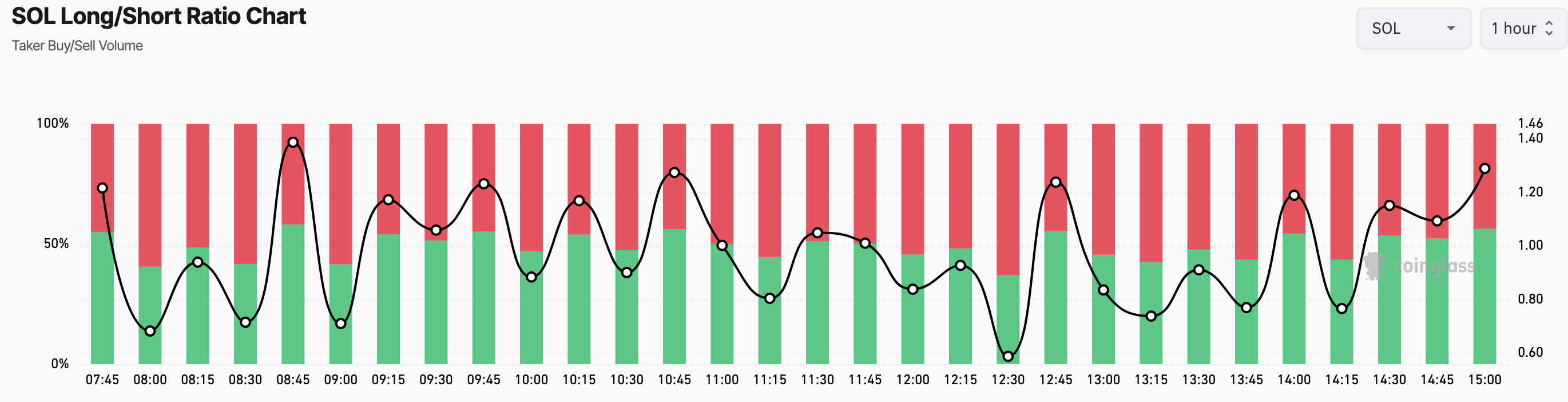코인글래스에 따르면, 솔라나 롱/숏 비율은 1.14입니다. 이름에서 알 수 있듯이, 롱/숏 비율은 시장에서 거래자들의 기대를 나타내는 지표입니다. 비율이 1보다 낮으면 시장에 숏이 롱보다 많다는 것을 의미합니다.