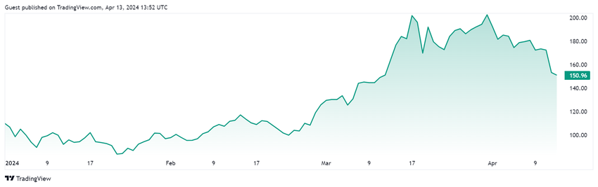 이러한 가격 변동은 솔라나에게 충격적인 일이었습니다. SOL의 가격은 올해 들어 약 50% 상승하는 등 상승 추세를 이어왔습니다. 그러나 3월 중순 200달러 이상으로 정점을 찍은 이후 상당한 어려움을 겪으며 지난 한 주 동안 13% 이상 하락한 것으로 BeInCrypto 데이터에 따르면 나타났습니다.