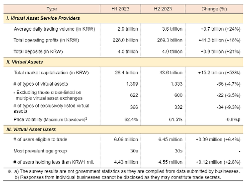 최근 KOFIU 보고서에 따르면, 한국의 암호화폐 사용자 수는 2023년에 39만 명이 증가하여 총 645만 명에 달할 것으로 예상됩니다. 국내 일평균 거래량도 3조 6천억 원으로 상반기 대비 24% 증가했습니다.