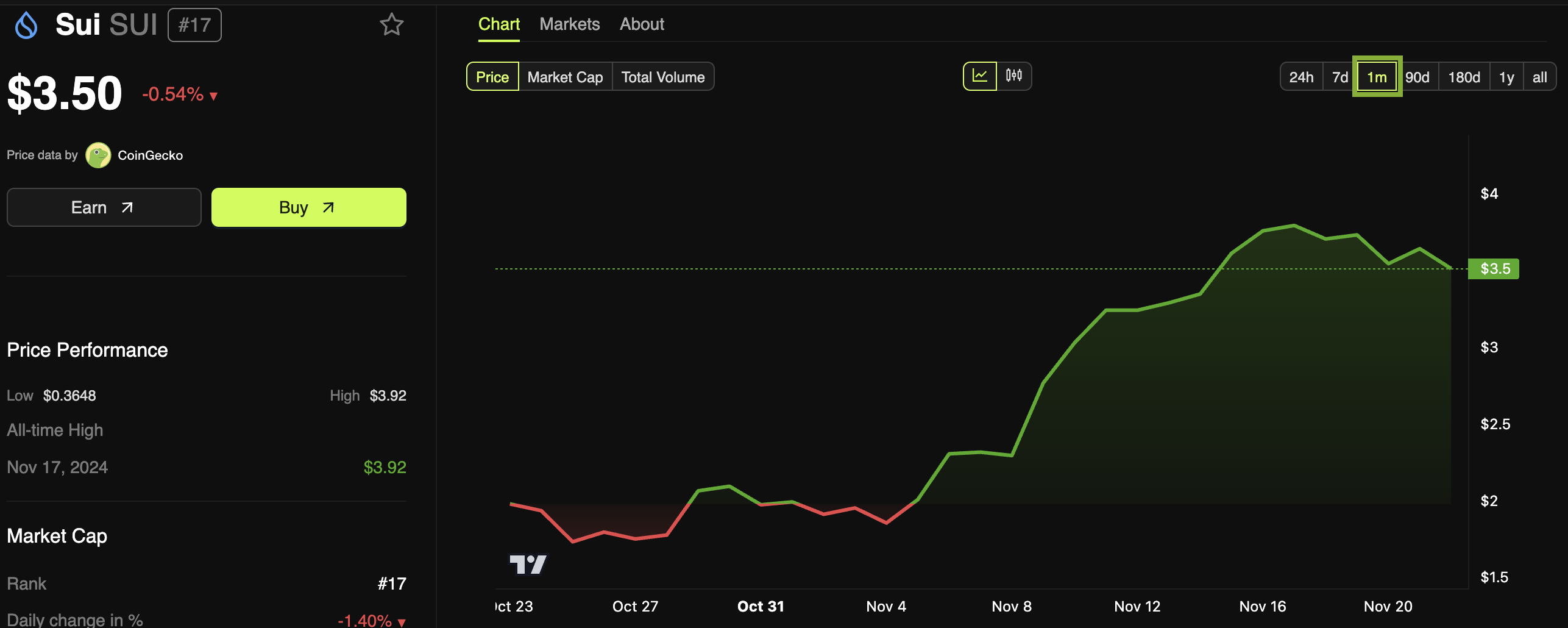 Sui는 최근 상당히 좋은 성과를 보이고 있습니다. 최근 한 달 동안 74% 상승하며 놀라운 상승세를 보였습니다가 11월 20일에 사상 최고치를 기록했습니다. 어제는 블록체인이 거의 두 시간 동안 블록을 생성하지 않았습니다만, 토큰 가격은 인상적으로 안정적이었습니다. 이러한 기본 요소들은 Sui를 프랭클린 템플턴에게 매력적인 파트너로 만들 수 있습니다.