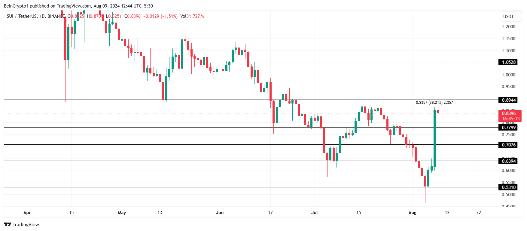 SUI 가격은 어제 알트코인 중 최고의 성과를 기록하며 시장에 깊은 인상을 남겼습니다.