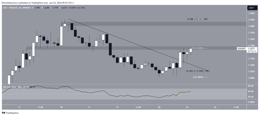그러나 SUI는 0.5 피보나치 되돌림 저항선과 수평 저항 영역에 의해 형성된 1.23달러의 저항이 합쳐진 구간에서 거래되고 있습니다.