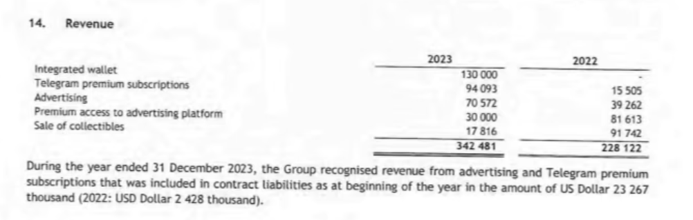 또한 회사는 사용자 이름과 가상 전화번호와 같은 디지털 수집품 판매로 1780만 달러를 벌어들였으며, TON 블록체인의 네이티브 토큰인 톤코인으로 결제되었습니다. 이러한 암호화폐 관련 활동은 텔레그램 연간 수익의 약 40%인 거의 1억 4800만 달러를 창출했습니다.