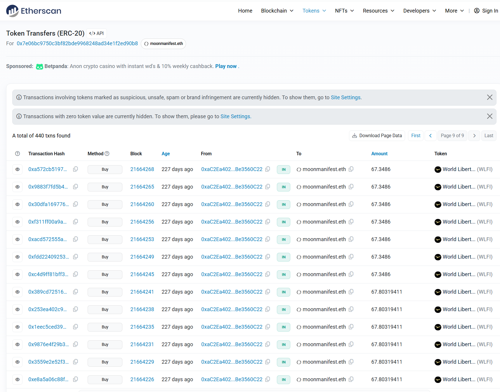 월요일 저녁, WLFI는 주요 글로벌 암호화폐 거래소에서 거래를 시작했습니다. 이로 인해 이더리움 가스 요금이 몇 달 만에 처음으로 100 Gwei를 넘었습니다. moonmanifest.eth라는 지갑 주소는 10억 개의 WLFI 토큰을 보유하고 있으며, 자신의 몫을 주장하기 시작했습니다.