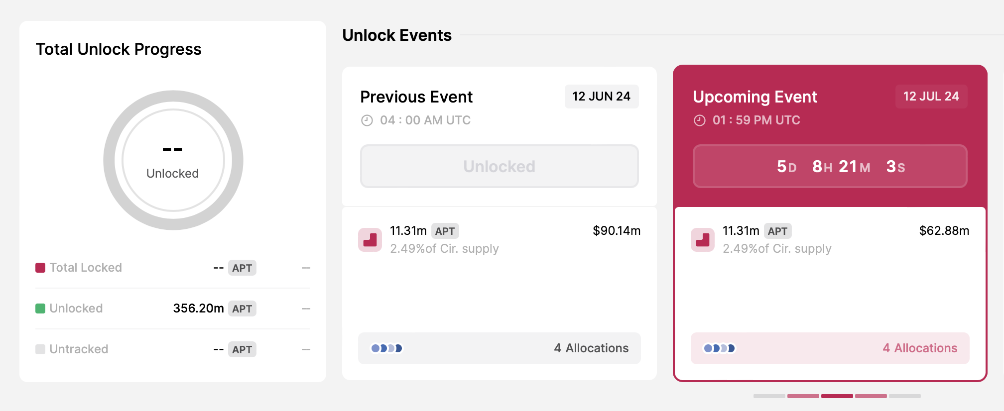 - 언락된 토큰 수: 11,3백만 APT