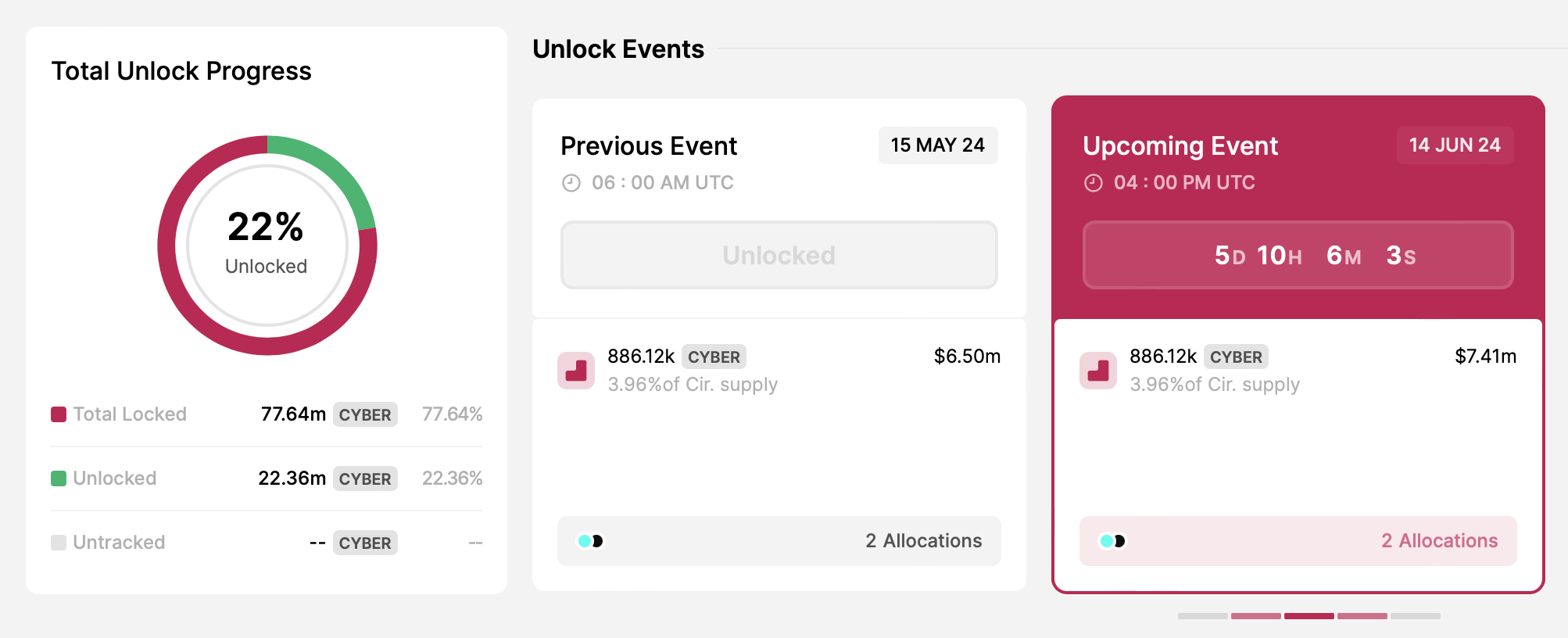 - 언락된 토큰 수: 886,120 CYBER