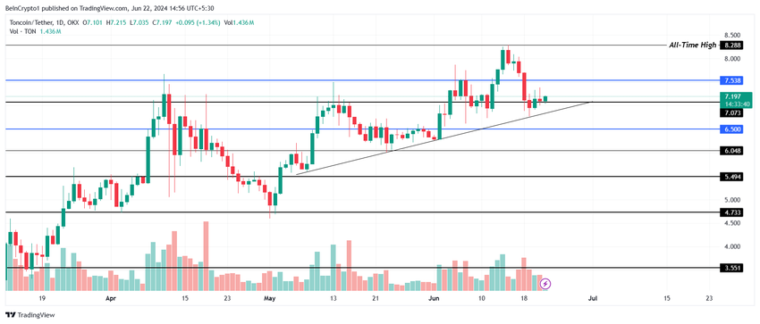톤코인의 가격 7.1달러는 지원 수준인 7.0달러보다 높으며, 앞서 언급한 요인들이 작용하면 톤은 더 상승할 수 있습니다. 알트코인의 다음 주요 저항선은 $7.5이며, 이는 과거에 톤코인이 세 번이나 ATH를 기록하지 못하게 했던 저항선입니다.