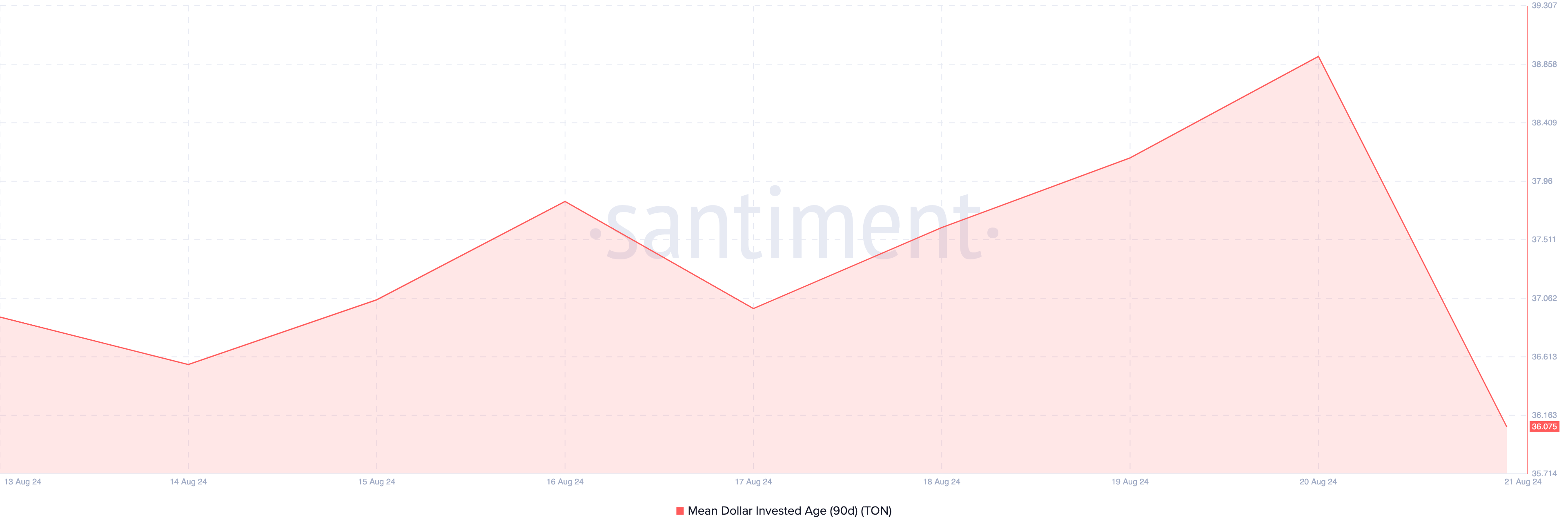 보유 시간이 증가하면 소유자들이 판매를 자제하고 있음을 의미합니다. 톤코인의 경우 그렇지 않습니다. 지난 주에 보유 시간이 95% 감소했습니다.