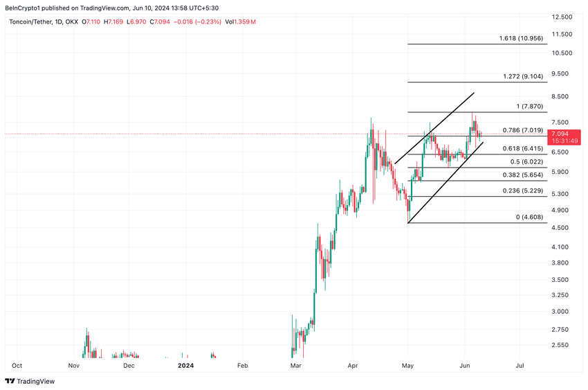 이런 일이 발생하고 하락세가 시장을 완전히 장악하면 TON 가격은 지지선 아래인 6.41달러까지 급락할 수 있습니다.