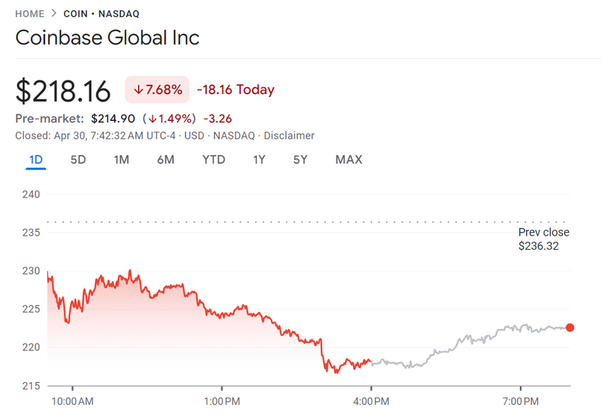 이 글을 쓰는 시점에서 COIN은 4월 30일 기준 $236.32의 종가를 기록했습니다.