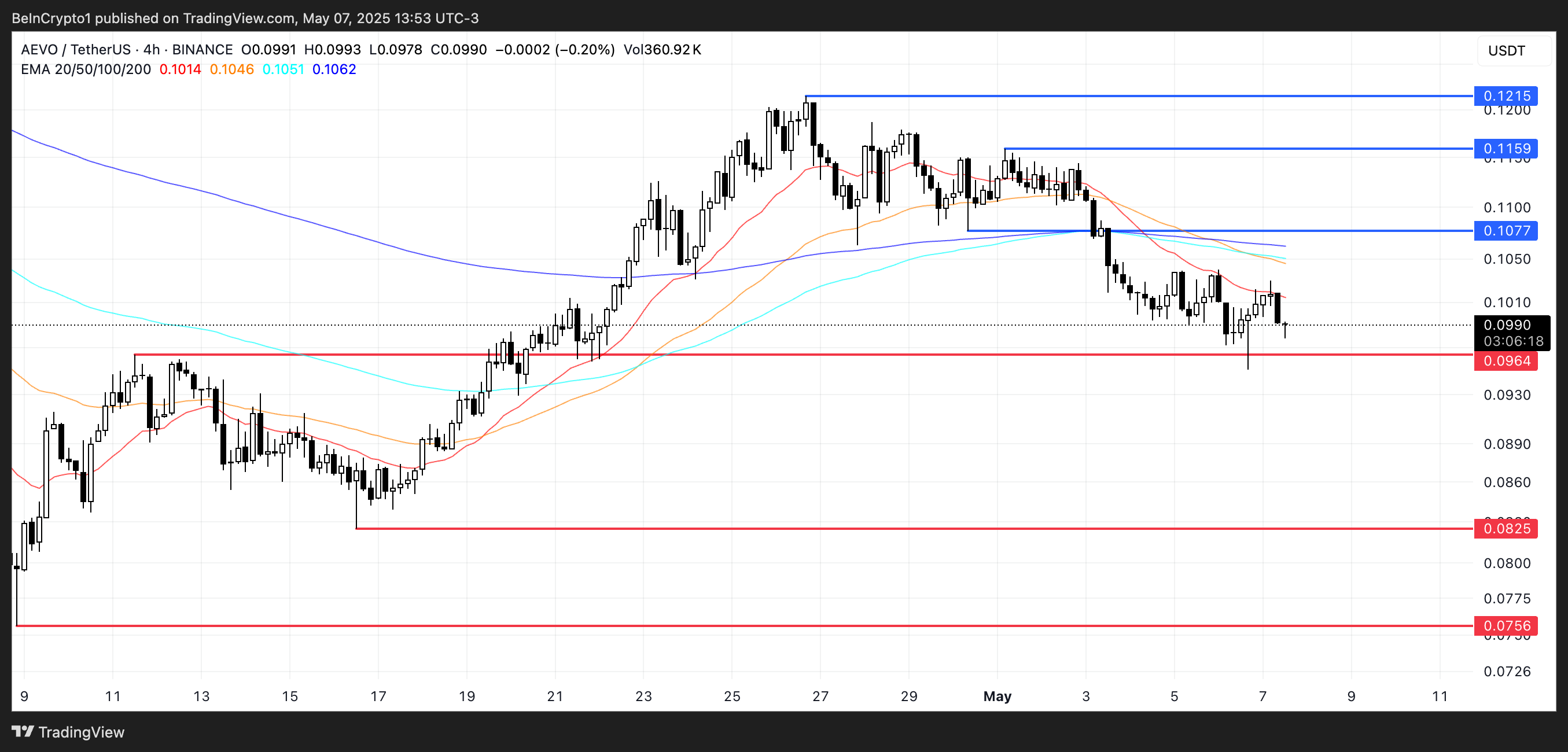 AEVO는 지난 7일 동안 거의 12% 하락했으며, 가격이 0.10달러 이상을 유지하는 데 어려움을 겪고 있습니다.
