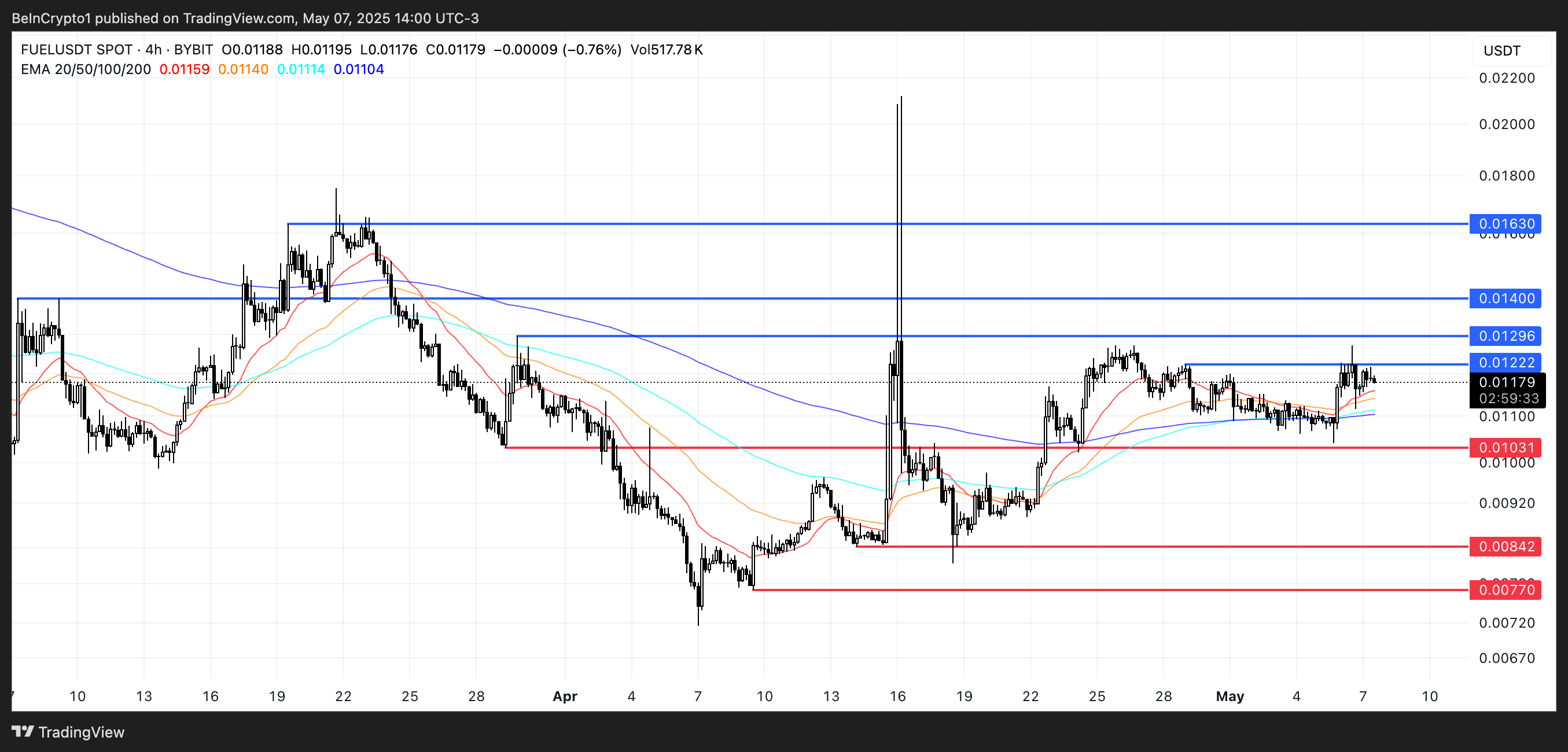그 수준이 다시 테스트되고 돌파되면, FUEL은 0.0129달러와 0.014달러로 상승할 수 있습니다. 강한 상승세가 이어지면 0.0163달러까지 다시 상승할 수 있습니다.
