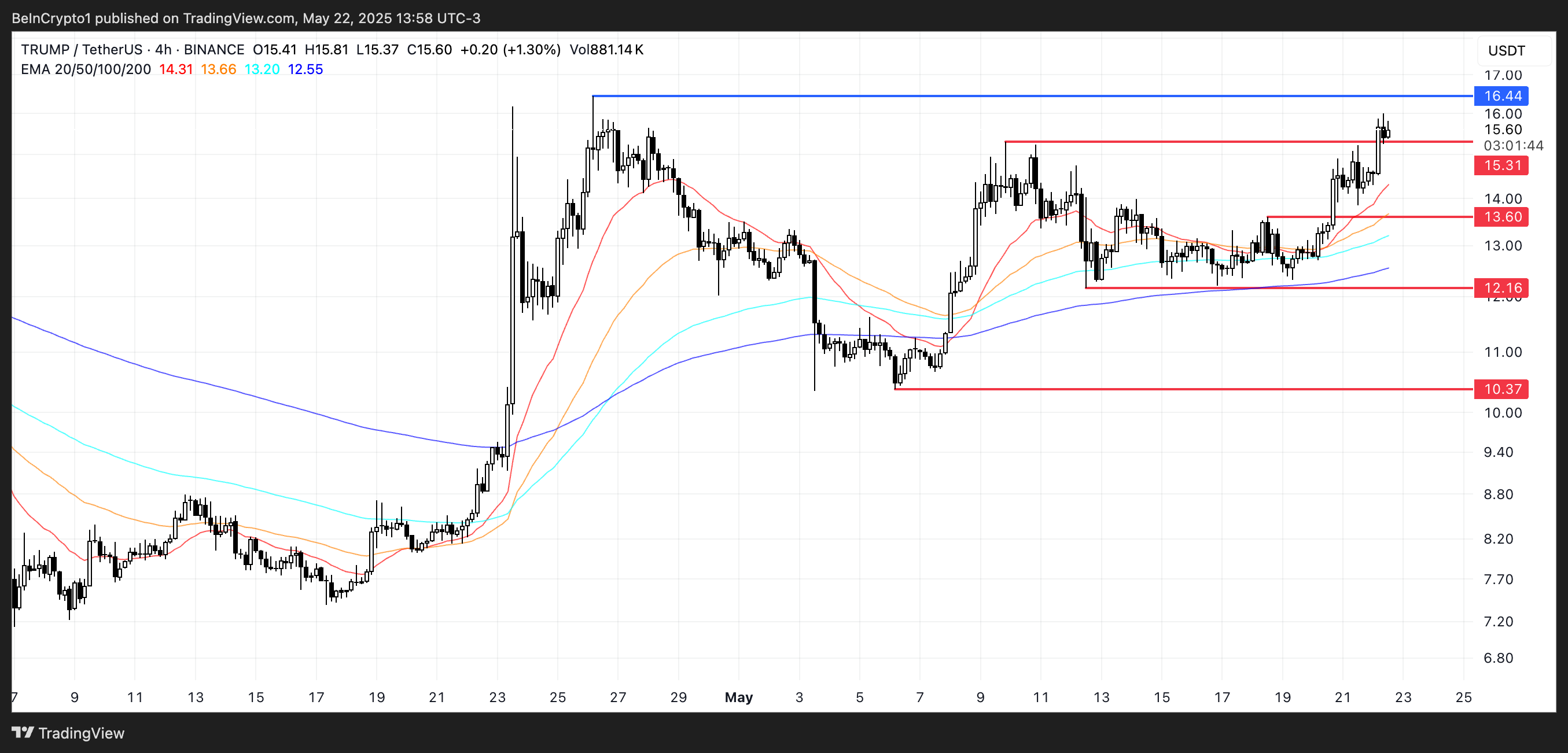 기술적으로, TRUMP는 15.31달러의 주요 지지 바로 위에 위치해 있습니다.