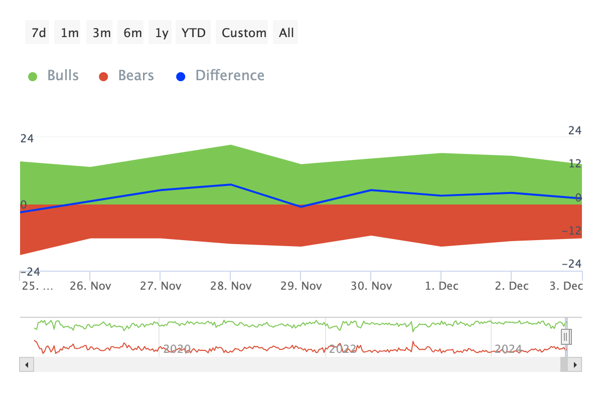 반면, 베어(Bears)는 유사한 양을 매도한 주소입니다. 베어가 불보다 많을 때, 암호화폐는 매도 압력을 경험할 가능성이 높습니다. 그러나 최고의 알트코인으로서, 트론의 불은 베어를 앞질렀습니다. 지속된다면, TRX의 가격은 0.44달러로 반등할 가능성이 높습니다.