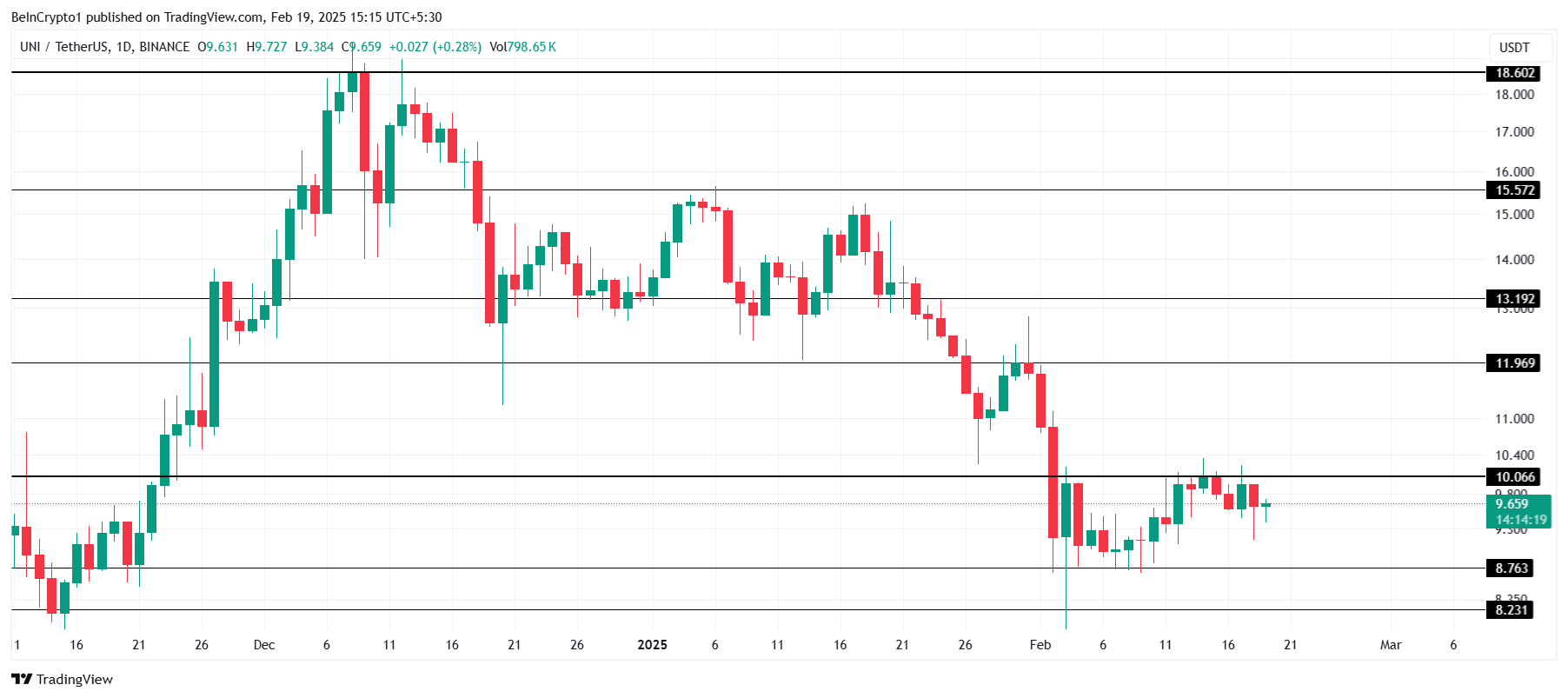 그러나 유니스왑이 V4 채택을 가속화할 수 있다면, 10.06달러 장벽을 돌파하고 이를 지지선으로 전환할 수 있습니다. 이는 UNI가 더 높은 가격을 목표로 하여 현재의 하락 전망을 무효화할 수 있습니다. 이 회복의 열쇠는 V4 업그레이드의 성공적인 채택에 있으며, 이는 토큰의 미래 잠재력에 대한 투자자 신뢰를 다시 불러일으킬 수 있습니다.