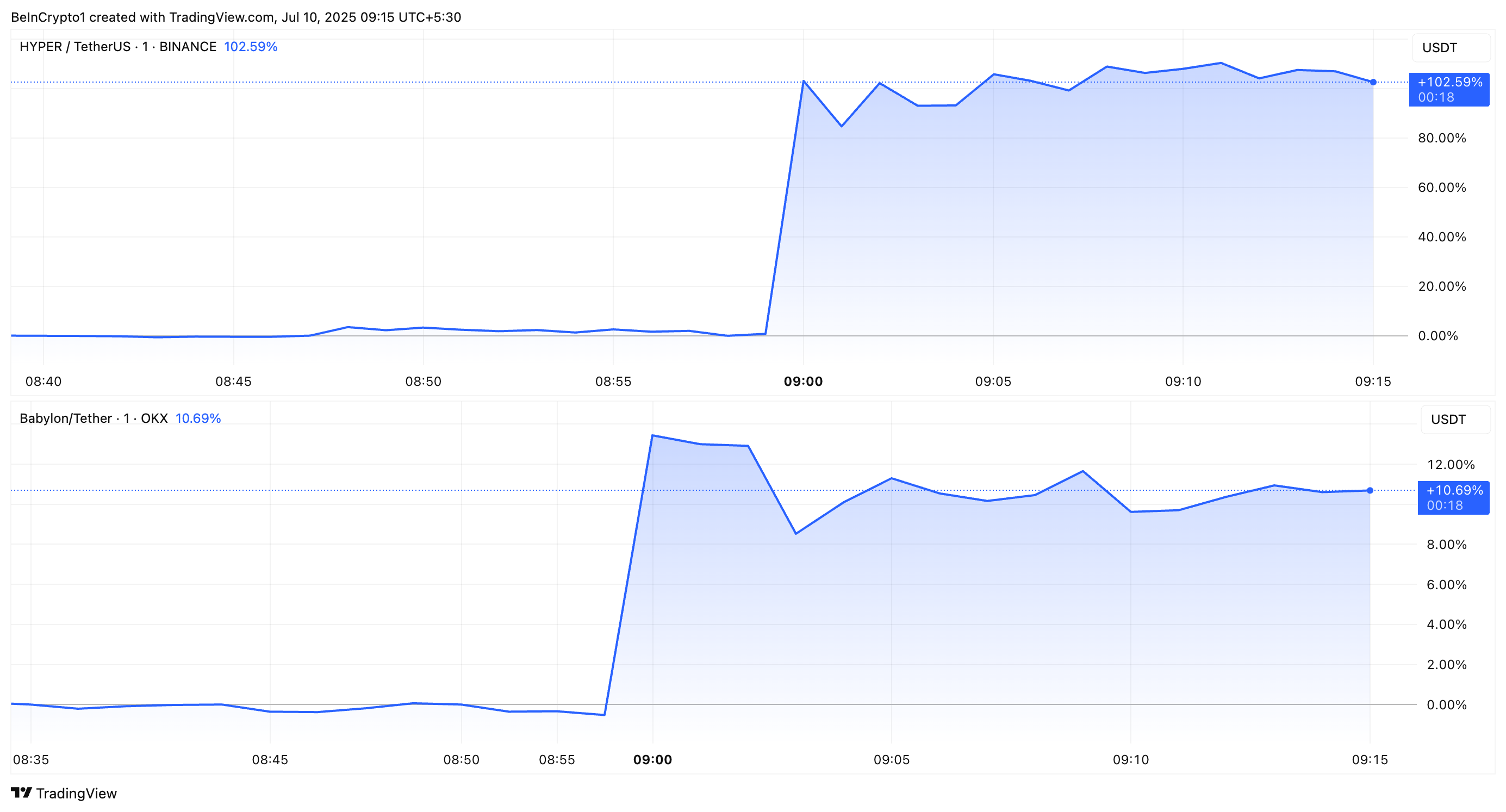 발표 후, 두 알트코인은 큰 상승을 보였으며, HYPER는 100% 이상 급등했습니다.
