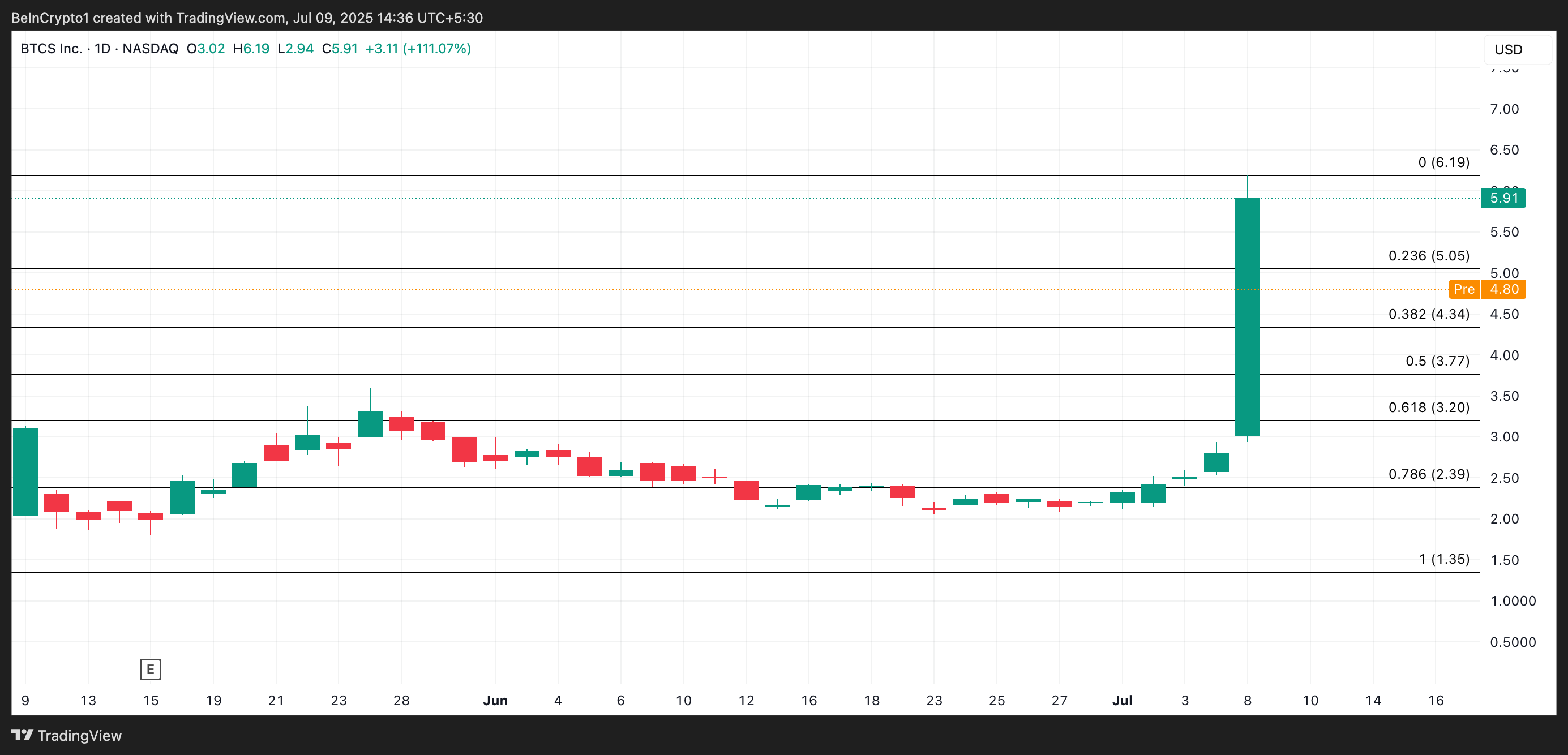 BTCS 주가는 화요일에 108.93% 급등하여 3년 만에 최고치인 5.91달러에 마감했습니다. 회사는 2025년에 1억 달러를 모금하여 이더리움을 인수할 계획을 발표했습니다. 메릴랜드에 본사를 둔 블록체인 인프라 회사는 이 움직임이 이더리움에 집중하는 상장 기업으로서의 장기 비전을 강화한다고 밝혔습니다.