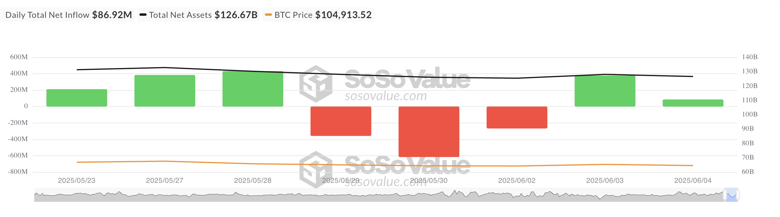 수요일에 미국 상장 현물 BTC ETF의 순유입은 8692만달러에 달했습니다. 이 수치는 이러한 투자 펀드에 대한 투자자 관심이 지속되고 있음을 나타내지만, 6월 3일에 게시된 3억7800만달러에서 77% 감소한 것입니다.