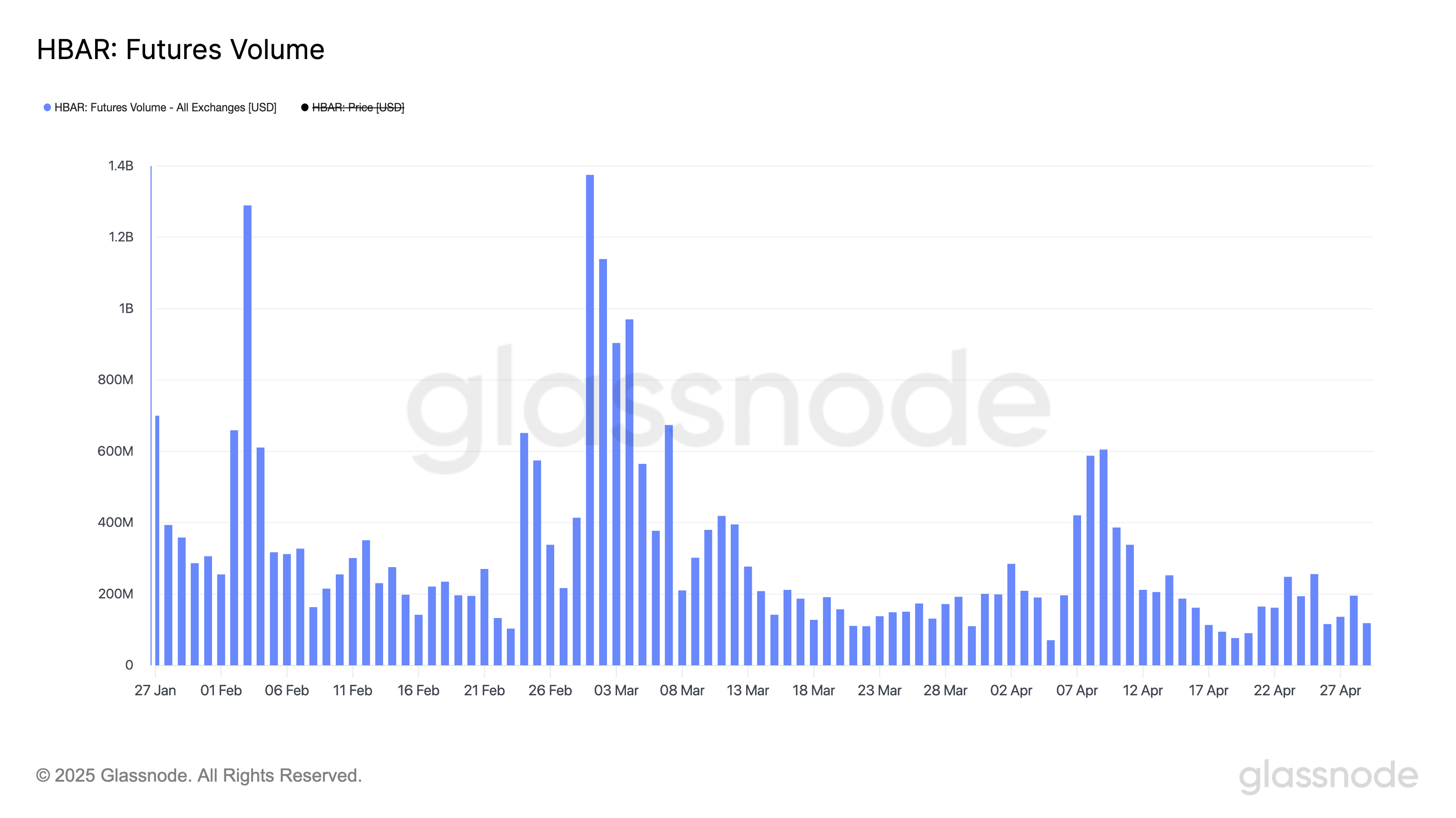 HBAR 선물 거래량은 현재 1억1800만 달러로, 4월 19일의 최근 최저치인 7600만 달러에서 증가했습니다. 이는 지난 3개월 동안의 최저점입니다.