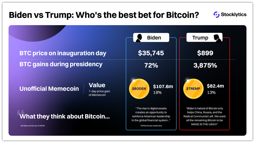 암호화폐 시장에 대한 겐슬러의 규제 접근 방식이 불러일으킨 정서에도 불구하고, 비트코인을 두고 트럼프와 바이든 중 누구를 선택할지는 그들의 정책을 평가해야 합니다. 트럼프는 항상 비트코인과 블록체인 분야를 열렬히 지지하는 것으로 알려져 있습니다. 한편, 바이든의 더 엄격한 규제는 시장의 안정성과 보안을 보장하지만 혁신을 저해할 수 있습니다.