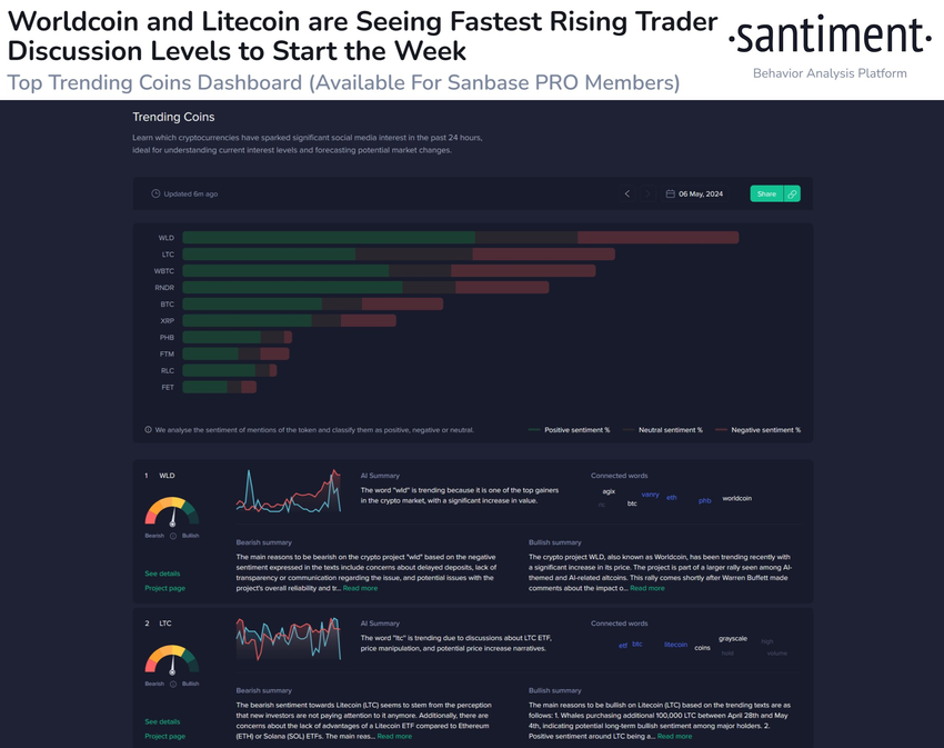 최근 센티먼트의 보고서에 따르면 5월 초 월드코인의 시가총액이 44% 급등했으며, AI 기술로 인한 불법 금융 활동 가능성에 대한 워런 버핏의 발언으로 인해 더욱 활기를 띠고 있다고 합니다. 이러한 발언으로 인해 AI 코인에 대한 관심이 높아졌고, 월드코인이 그 선두를 달리고 있습니다.