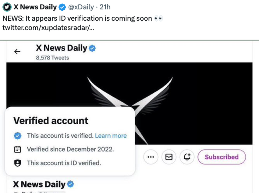 ID 계정 인증 상태. 출처: X News Daily